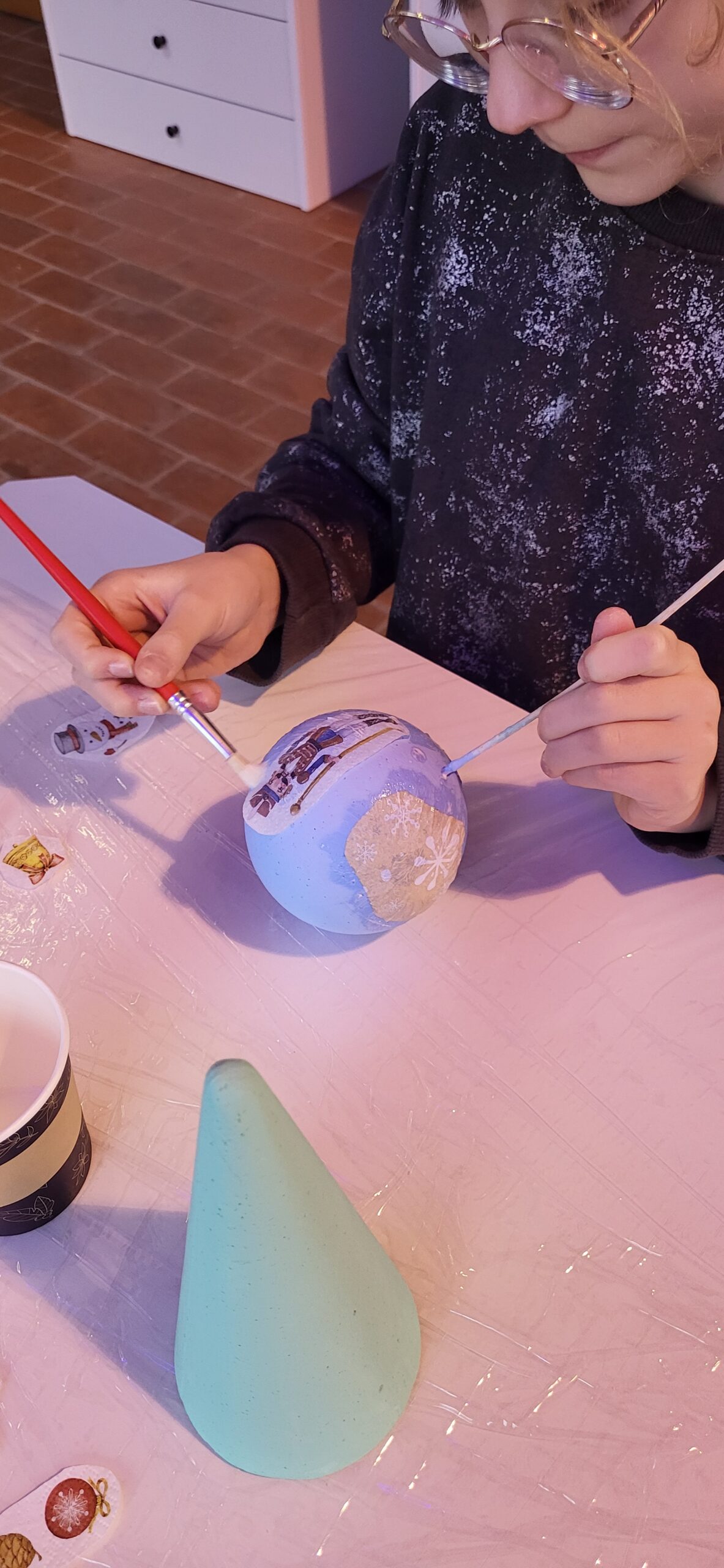 Razem z naszymi gośćmi tworzyliśmy kolorowe bombki i urocze choinki metodą decoupage – każdy projekt był jedyny w swoim rodzaju!